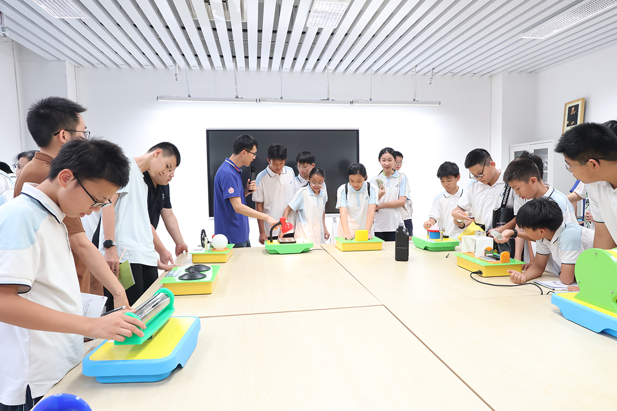 在科普设备实操环节,同学们亲手体验光电特性实验,探索光电奥秘。科普互动环节将气氛推向高潮,讲解员老师指导学生们亲手操作科普仪器,沉浸式体验,让书本上的物理光学原理变得触手可及。